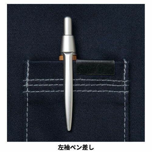 ななめの胸ポケットと赤いラインがアクセントになったヨーロピアンテイストのかっこいい作業着は、高級感のある綿混紡のソフトな素材感とワイルドさのある中に気品のあるデザインが人気となっています。