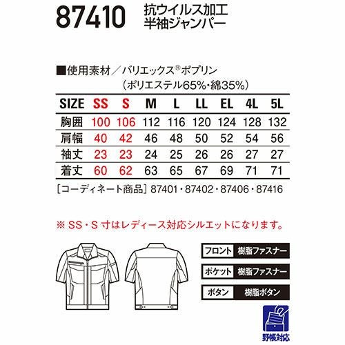 作業服 ジャンパー 自重堂 抗ウイルス加工半袖ジャンパー 87410 作業着 春夏作業着 作業服 ジャンパー 春夏