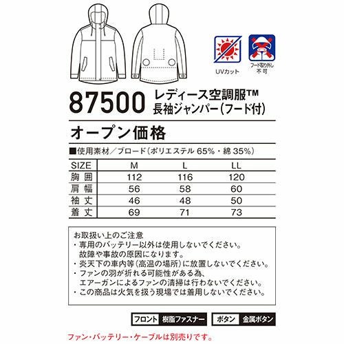 EFウエア 自重堂 フード付き空調服レディース長袖ジャンパー 87500 作業着 作業服 春夏 熱中症対策 上着 ベスト 扇風機作業服 工事 土木 土建 建設 外作業 炎天下 釣り アウトドア スポーツ観戦 イベント 猛暑対策