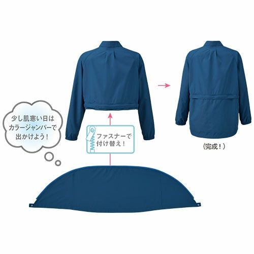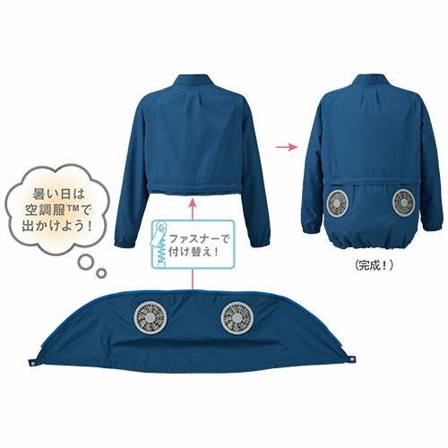 カラージャンパーとしても着用可能な2WAY仕様の空調服 裾部分が着脱可能なのでオールシーズン着増しできるウェア暑い日は空調服で出かけよう!少し肌寒い日はカラージャンパーで出かけよう!