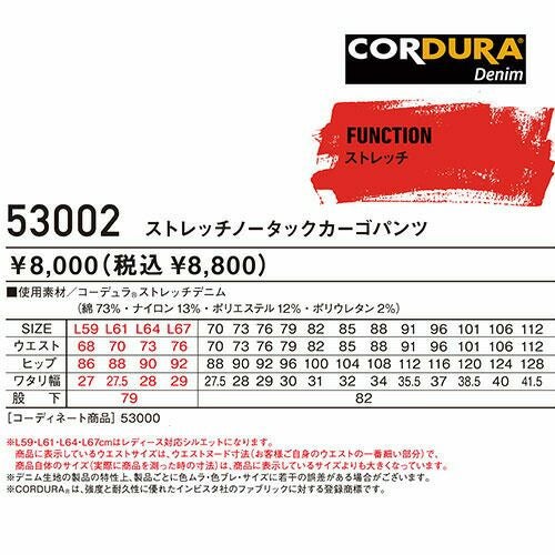 作業服 デニム 自重堂 Jawin ストレッチノータックカーゴパンツ 53002 作業着 通年 秋冬 ストレッチ デニム カッコいい デニムパンツ デニム 作業ズボン 作業パンツ パンツ ワーク ワークウェア ワークパンツ