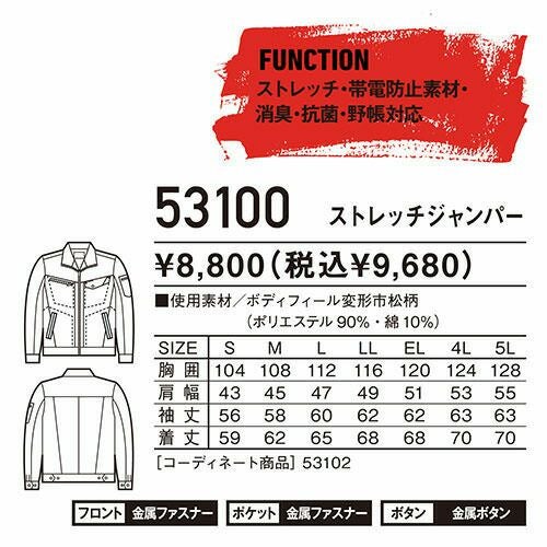 作業服 ブルゾン 自重堂 Jawin ストレッチジャンパー 53100 作業着 通年 秋冬 ストレッチ 帯電防止 消臭 抗菌 野帳対応 おしゃれ かっこいい 人気 ワーク企業 法人 作業 工場 外作業