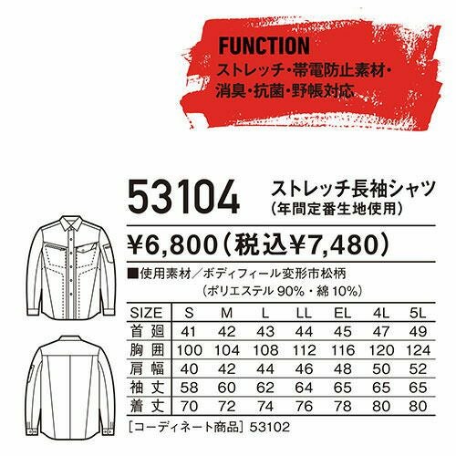 丈夫で伸縮性に優れたストレッチT/C素材あらゆる現場に対応する帯電防止 JIS T8118 適合ウエア