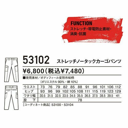 作業服 カーゴパンツ 自重堂 Jawin ストレッチノータックカーゴパンツ 53102 作業着 通年 秋冬 ストレッチ 帯電防止 消臭 抗菌 おしゃれ かっこいい 人気 ズボン 作業ズボン 作業パンツ 作業 工事 土木 塗装 DIY diy
