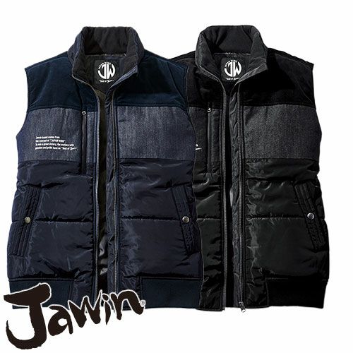 カジュアルテイスト防寒ベストコーデュロイ・デニム・高密度タフタの3素材を組み合わせてデザイン性を追求した防寒ベスト