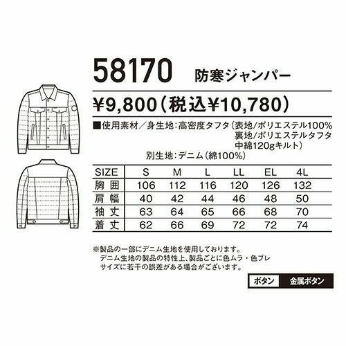 自重堂 Jawin 防寒ジャンパー 防寒ジャケット ドカジャン 保温 人気 安い ダウン 防寒着 防寒ジャンパー 上着 ブルゾン 最強 アウター おしゃれ 暖かい 秋冬 かっこいい 作業着 ワーク マン メンズ 寒さ対策 屋内作業 屋外作業 あったか 防寒グッズ 58170