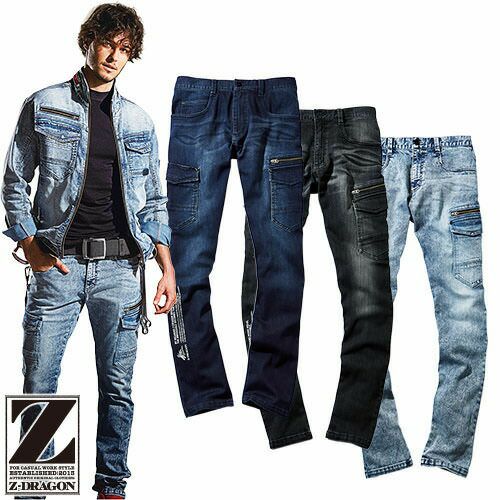 作業服 デニム 自重堂 Z-DRAGON ストレッチノータックカーゴパンツ 71602S 作業着 通年 秋冬 ストレッチ デニム カッコいい 女性対応 細身 スリム デニムパンツ デニム 作業ズボン 作業パンツ パンツ ワーク ワークウェア ワークパンツ
