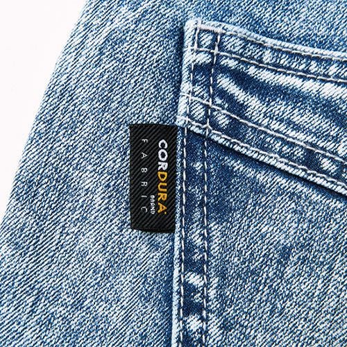強度と耐久性に優れたコーデュラストレッチデニム素材 デザイン性と機能性を併せ持つハイブリッドモデル・高強度ナイロン66を混紡した織物・オーセンティックなデニムの見た目と手触り・ミリタリーユニフォームから開発された技術・コットン100%のデニムと比べて最低4倍以上の着用耐久性