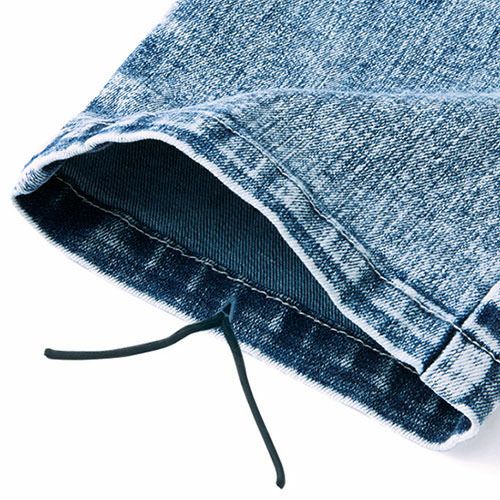 スリムシルエットで裾がスッキリし動きやすいジョガーパンツ ・コットン100%のデニムに比べて4倍以上の耐摩耗性を実現・高密度ナイロン66を混紡した織物・オーセンティックなデニムの見た目と手触り・ミリタリーユニフォームから開発された技術