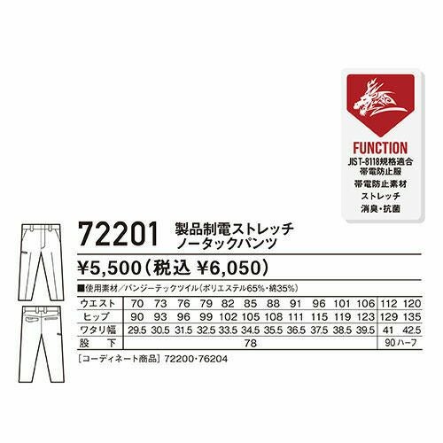 作業服 パンツ スラックス 自重堂 Z-DRAGON 製品制電ストレッチノータックパンツ 72201 作業着 通年 秋冬 帯電防止 ストレッチ 消臭 抗菌 男女共用 作業ズボン 作業パンツ ワークパンツ ズボン おしゃれ かっこいい オフィス ユニホーム 作業 軽作業 外作業 工場 現場