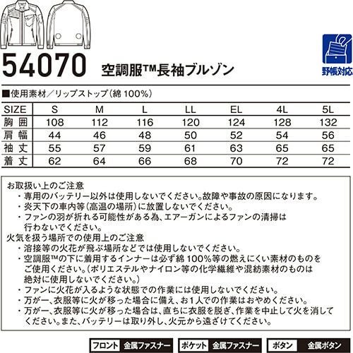 空調服 長袖ブルゾン Jawin ジャウィン 服のみ 54070 自重堂 作業着 作業服 春夏 メンズ 涼しい 快適 猛暑対策 熱中症対策 上着 ジャケット 扇風機作業服 工事 土木 土建 建設 外作業 炎天下