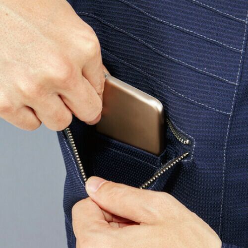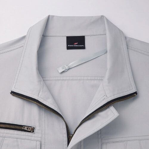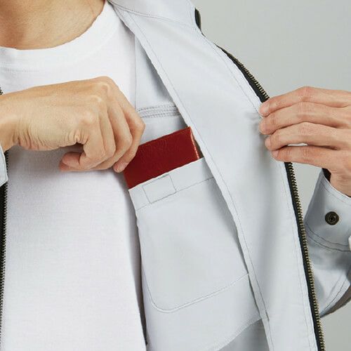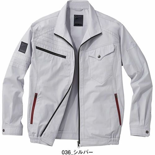 スプリットファスナーが際立つ空調服 ポリエステル100%長袖ブルゾン 現場作業のみならずアウトドアやスポーツ観戦でもスタイリッシュに着こなす。
