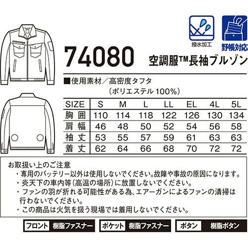 空調服 長袖ブルゾン Z-DRAGON 服のみ 74080 作業着 作業服 春夏 メンズ 涼しい 快適 猛暑対策 熱中症対策 上着 ジャケット 扇風機作業服 工事 土木 土建 建設 外作業 炎天下