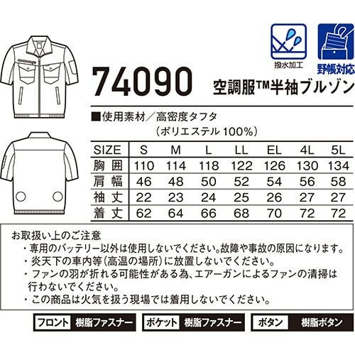 空調服 半袖 自重堂 Z-DRAGON 空調服半袖ブルゾン服のみ 74090 作業着 作業服 春夏 メンズ 涼しい 快適 猛暑対策 熱中症対策 上着 ジャケット 扇風機作業服 工事 土木 土建 建設 外作業 炎天下