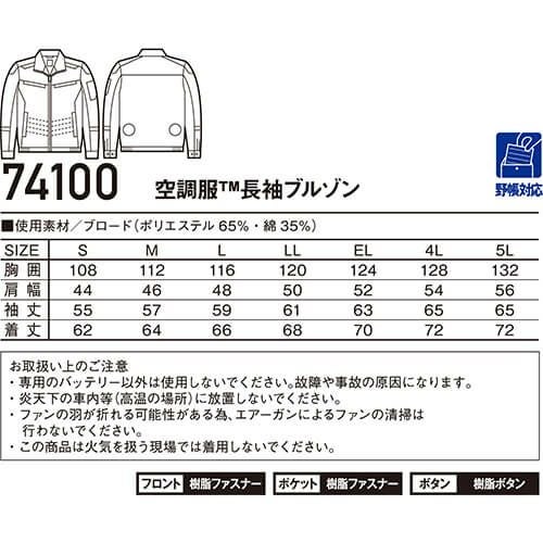 空調服 長袖ブルゾン Z-DRAGON 服のみ 74100 作業着 作業服 春夏 メンズ 涼しい 快適 猛暑対策 熱中症対策 上着 ジャケット 扇風機作業服 工事 土木 土建 建設 外作業 炎天下