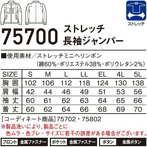 作業服 ジャンパー 自重堂 Z-DRAGON ストレッチ長袖ジャンパー 75700 作業着 春夏 メンズ レディース 人気 上下セット対応 制服 企業ユニフォーム 工事 土木 溶接 塗装 工場 電気工事 土建 建設 建築 設備 秋冬あり 動きやすい 伸縮