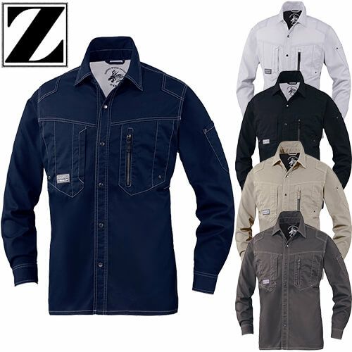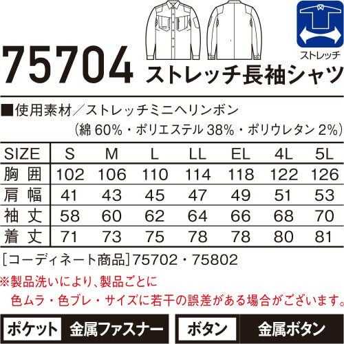 作業服 長袖シャツ 自重堂 Z-DRAGON ストレッチ長袖シャツ 75704 作業着 春夏 メンズ レディース 人気 上下セット対応 制服 企業ユニフォーム 工事 土木 溶接 塗装 工場 電気工事 土建 建設 建築 設備 秋冬あり 動きやすい 伸縮