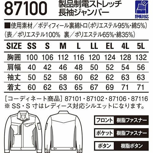 作業服 ジャンパー 自重堂 Field Message 製品制電ストレッチ長袖ジャンパー 87100 作業着 春夏 メンズ レディース ペアユニフォーム 人気 上下セット対応 制服 企業ユニフォーム 工場 研究 動きやすい 伸縮 静電気 埃 防汚 汚れにくい 落ちやすい