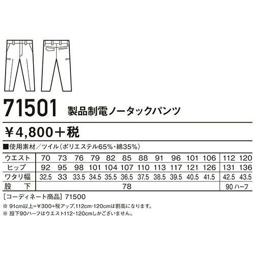 作業服 パンツ スラックス 自重堂 製品制電ノータックパンツ 71501 作業着 通年 秋冬 作業ズボン 作業パンツ ワークパンツ ズボン おしゃれ かっこいい オフィス ユニホーム 作業 軽作業 外作業 工場 現場
