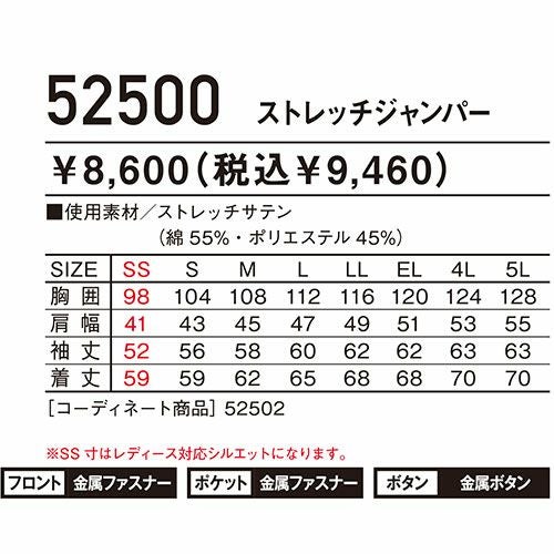 作業服 ジャンパー 自重堂 ストレッチジャンパー 52500 作業着 通年 秋冬 長袖 おしゃれ かっこいい 企業 法人 ワーク 作業 ワークユニフォーム ワークウェア 長袖ブルゾン ユニフォーム 大きいサイズ 庭 畑 仕事 土木 工事 現場