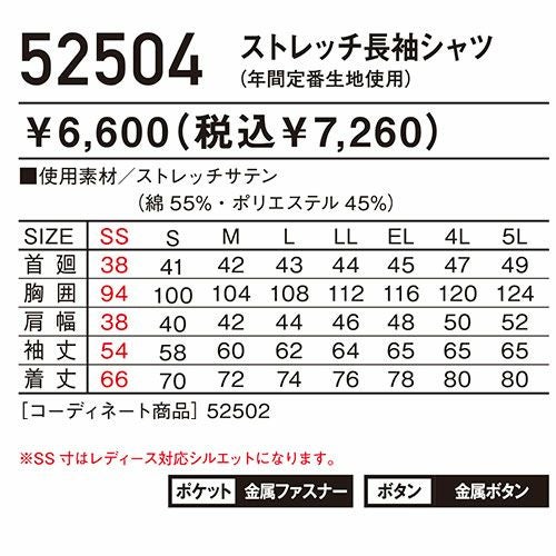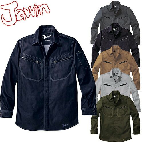 作業服 長袖シャツ 自重堂 ストレッチ長袖シャツ 52504 作業着 通年 秋冬 ワークシャツ