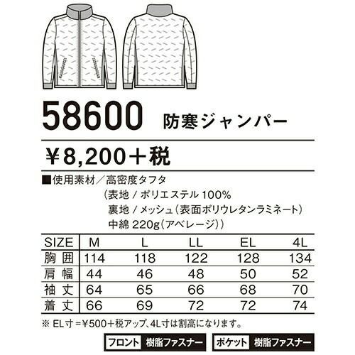 自重堂 防寒ジャンパー 防寒ジャケット ドカジャン 保温 人気 安い ダウン 防寒着 防寒ジャンパー 上着 ブルゾン 最強 アウター おしゃれ 暖かい 秋冬 かっこいい 作業着 ワーク マン メンズ 寒さ対策 屋内作業 屋外作業 あったか 防寒グッズ 58600