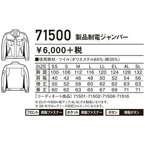 作業服 ジャンパー 自重堂 製品制電ジャンパー 71500 作業着 通年 秋冬 長袖 おしゃれ かっこいい 企業 法人 ワーク 作業 ワークユニフォーム ワークウェア 長袖ブルゾン ユニフォーム 大きいサイズ 庭 畑 仕事 土木 工事 現場 服