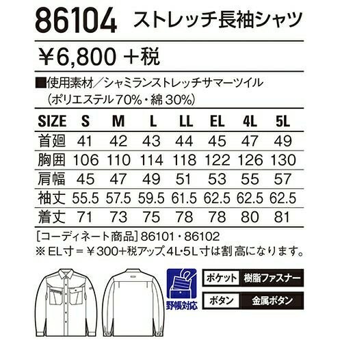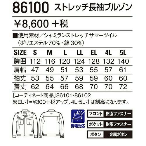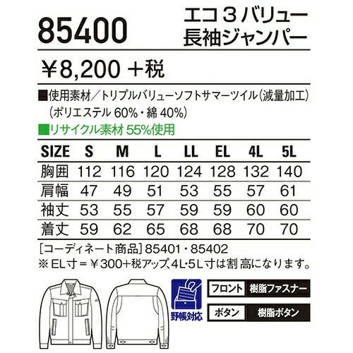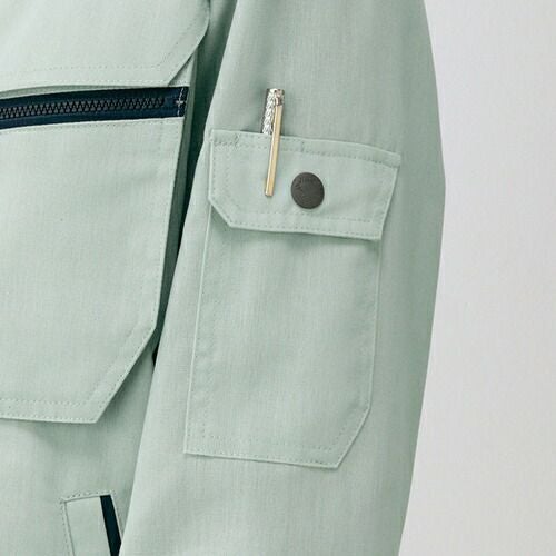 ボタンやファスナー等の突起物の露出をなくした 安全設計の男女ペアユニフォーム。 「製品制電」、「ストレッチ」、「消臭&抗菌」機能を装備した リーズナブルなユニフォーム。