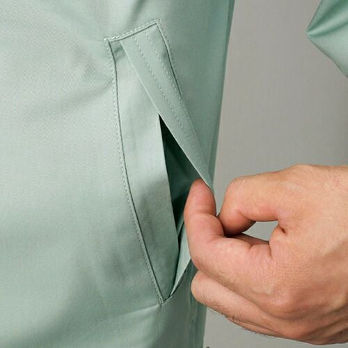 突起物の露出をなくした多機能ペアユニフォーム。 ファスナーやボタン、ベルトのバックルなどの突起物による事故を 未然に防げるようにデザインされたシリーズです。