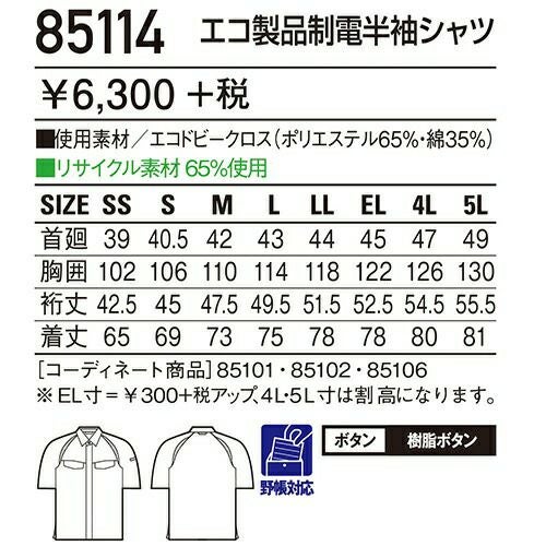 自重堂 作業服 84314 半袖シャツ 春夏 ユニセックス 作業着 半袖 ワークウエア ワークシャツ