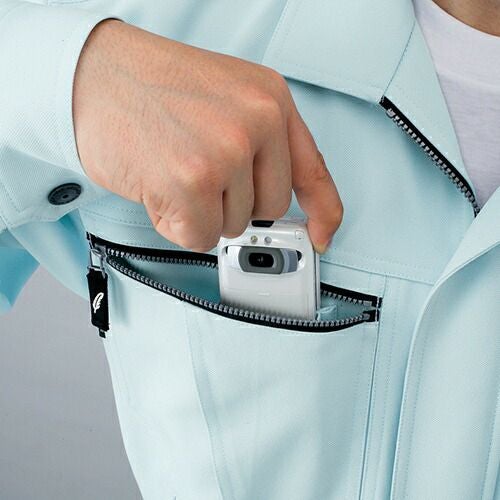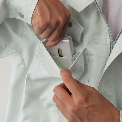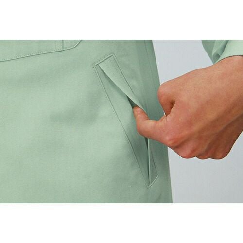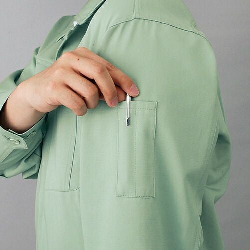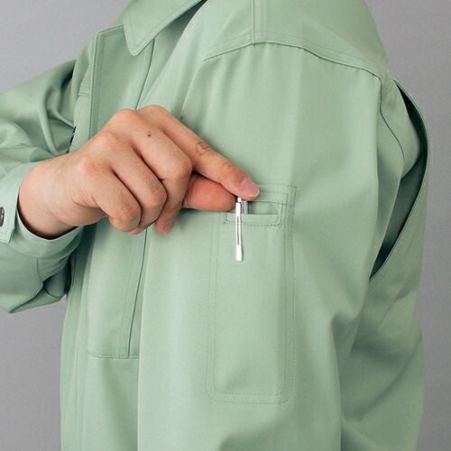 ボタンやファスナー等の突起物の露出をなくした 安全設計の多機能 男女ペアユニフォーム。 「製品制電」、「ストレッチ」、「消臭&抗菌」機能を装備したユニフォーム。