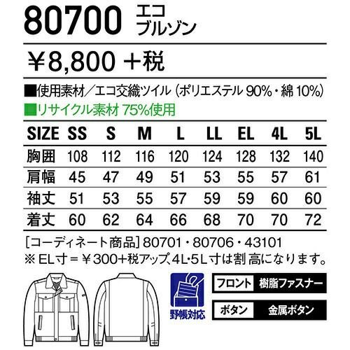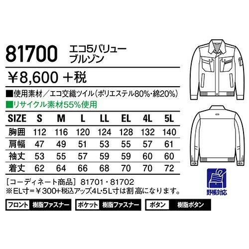 自重堂 作業服 81700 ブルゾン 秋冬 メンズ 作業着 ワークウエア 通年 上着 おしゃれ かっこいい 人気 企業 法人 ワーク 作業 工場 外作業 ワークユニフォーム 仕事 土木 工事 現場
