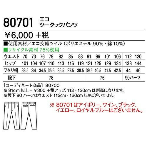 自重堂 作業服 80501 ツータックパンツ 秋冬 メンズ 作業着 腿ポケット無 ボトムス ワークウエア 通年 スラックス 作業ズボン 作業パンツ ワークパンツ ズボン おしゃれ かっこいい オフィス ユニホーム 作業 軽作業 外作業 工場 現場