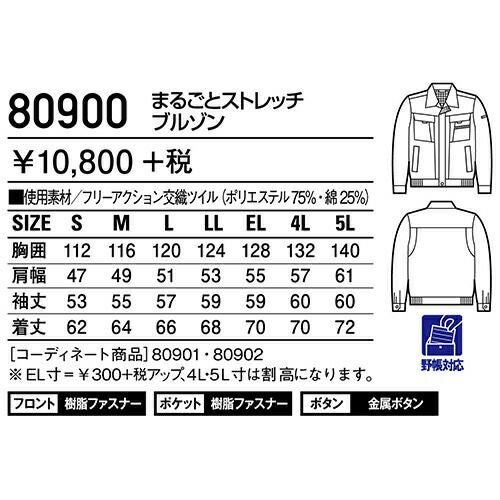 自重堂 作業服 80500 ブルゾン 秋冬 ユニセックス 作業着 ワークウエア 通年 上着 おしゃれ かっこいい 人気 企業 法人 ワーク 作業 工場 外作業 ワークユニフォーム 仕事 土木 工事 現場