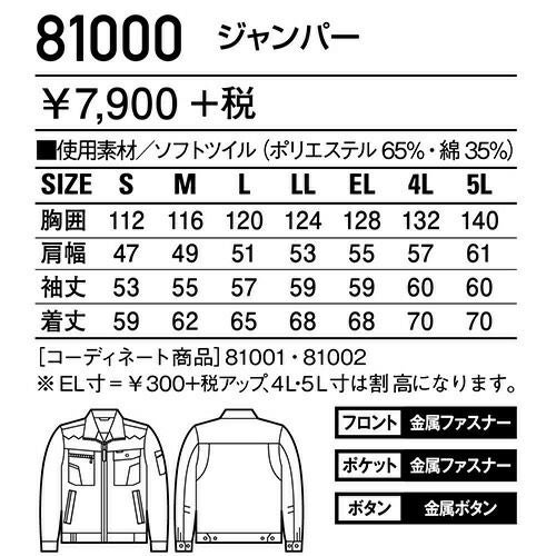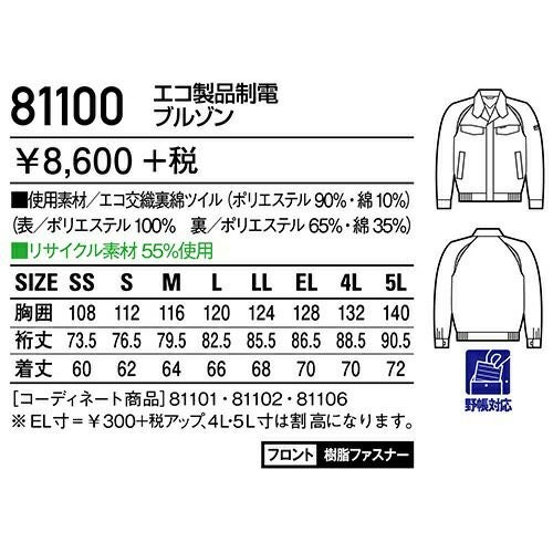 自重堂 作業服 81100 ブルゾン 秋冬 ユニセックス 作業着 ワークウエア 通年 上着 おしゃれ かっこいい 人気 企業 法人 ワーク 作業 工場 外作業 ワークユニフォーム 仕事 土木 工事 現場