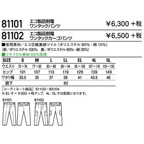 自重堂 作業服 81102 ワンタックカーゴ 秋冬 メンズ 作業着 ポケット付き ボトムス ワークウエア 通年 カーゴパンツ おしゃれ かっこいい 人気 ズボン 作業ズボン 作業パンツ 作業 工事 土木 塗装 DIY diy