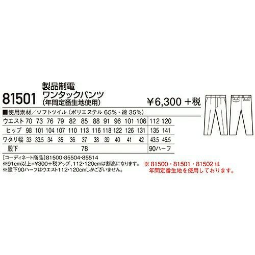 自重堂 作業服 81501 ワンタックパンツ 秋冬 メンズ 作業着 腿ポケット無 ボトムス ワークウエア 通年 スラックス 作業ズボン 作業パンツ ワークパンツ ズボン おしゃれ かっこいい オフィス ユニホーム 作業 軽作業 外作業 工場 現場