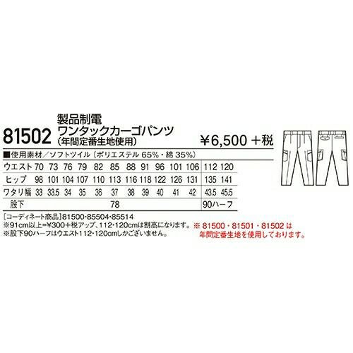 自重堂 作業服 81502 ワンタックカーゴ 秋冬 メンズ 作業着 ポケット付き ボトムス ワークウエア 通年 カーゴパンツ おしゃれ かっこいい 人気 ズボン 作業ズボン 作業パンツ 作業 工事 土木 塗装 DIY diy