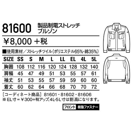 自重堂 作業服 81600 ブルゾン 秋冬 ユニセックス 作業着 ワークウエア 通年 上着 おしゃれ かっこいい 人気 企業 法人 ワーク 作業 工場 外作業 ワークユニフォーム 仕事 土木 工事 現場
