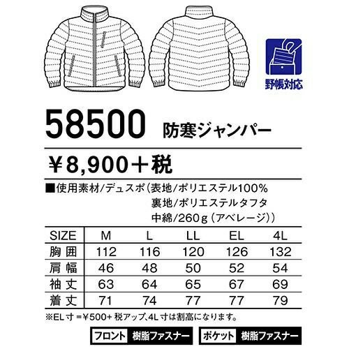 自重堂 ジャンパー 防寒ジャケット ドカジャン 保温 人気 安い ダウン 防寒着 防寒ジャンパー 上着 ブルゾン 最強 アウター おしゃれ 暖かい 秋冬 かっこいい 作業着 ワーク マン メンズ 寒さ対策 屋内作業 屋外作業 あったか 防寒グッズ 58500