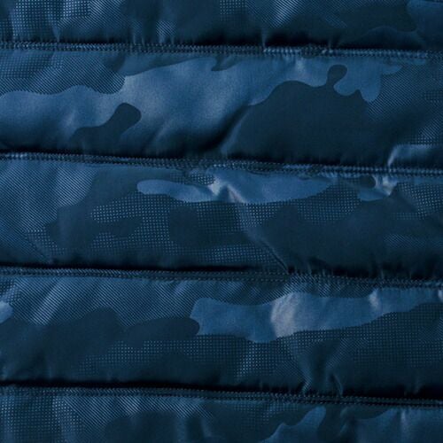 カモフラ柄のエンボス加工がさりげなく個性を演出し、 普段着感覚で着用できる軽量防寒。