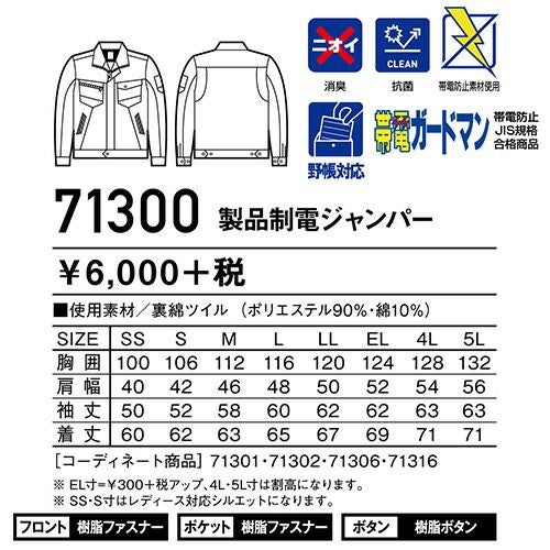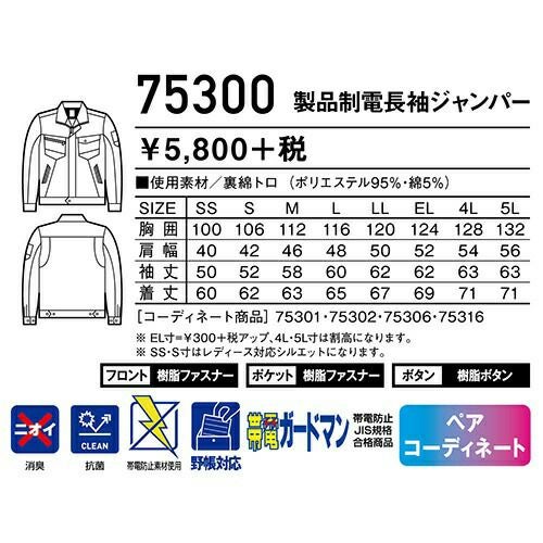 自重堂 作業服 80300 ブルゾン 秋冬 ユニセックス 作業着 ワークウエア 通年 上着 おしゃれ かっこいい 人気 企業 法人 ワーク 作業 工場 外作業 ワークユニフォーム 仕事 土木 工事 現場