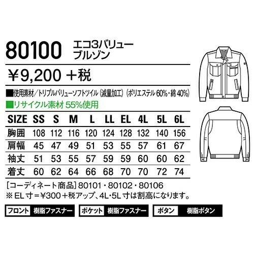 自重堂 作業服 80100 ブルゾン 秋冬 ユニセックス 作業着 ワークウエア 通年 上着 おしゃれ かっこいい 人気 企業 法人 ワーク 作業 工場 外作業 ワークユニフォーム 仕事 土木 工事 現場