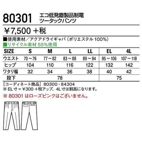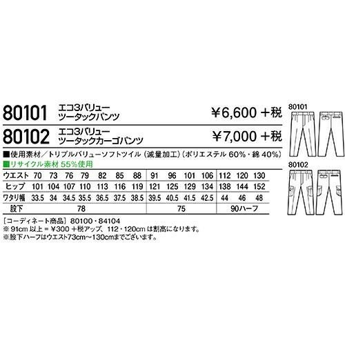 自重堂 作業服 80101 ツータックパンツ 秋冬 ユニセックス 作業着 腿ポケット無 ボトムス 通年 スラックス 作業ズボン 作業パンツ ワークパンツ ズボン おしゃれ かっこいい オフィス ユニホーム 作業 軽作業 外作業 工場 現場