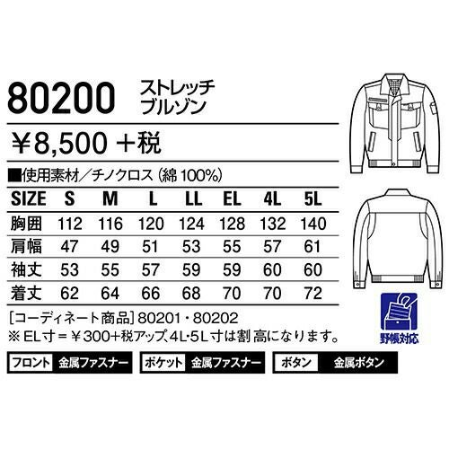 自重堂 Field Message 作業服 80200 ブルゾン 秋冬 メンズ 作業着 ワークウエア 通年 上着 おしゃれ かっこいい 人気 企業 法人 ワーク 作業 工場 外作業 ワークユニフォーム 仕事 土木 工事 現場