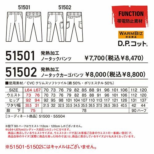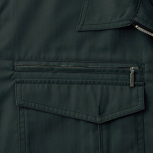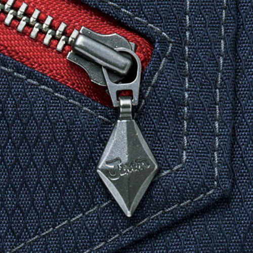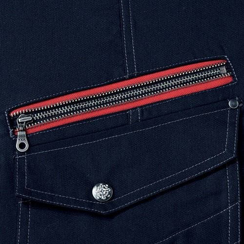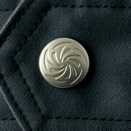 ゴールドのファスナーとボタンが抜群の存在感を発揮。 シャープなデザインに加えて発熱加工素材を採用したウォームビズ対応ワークウエア。 未加工布に比べて1?2℃温かい発熱加工素材(D.P.コット)を採用。
