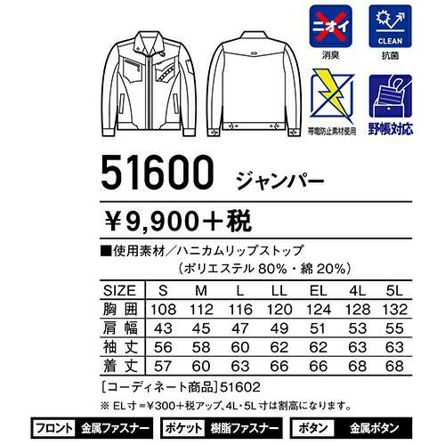 自重堂 Jawin 作業服 51600 ジャンパー 秋冬 メンズ 作業着 ワークウエア 通年 ブルゾン 上着 おしゃれ かっこいい 人気 企業 法人 ワーク 作業 工場 外作業 ワークユニフォーム 仕事 土木 工事 現場