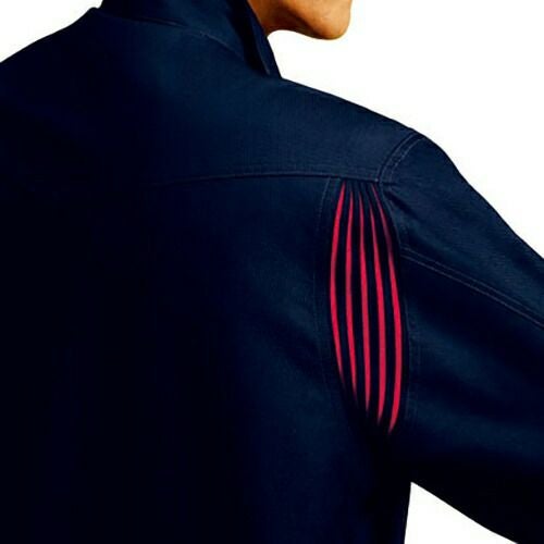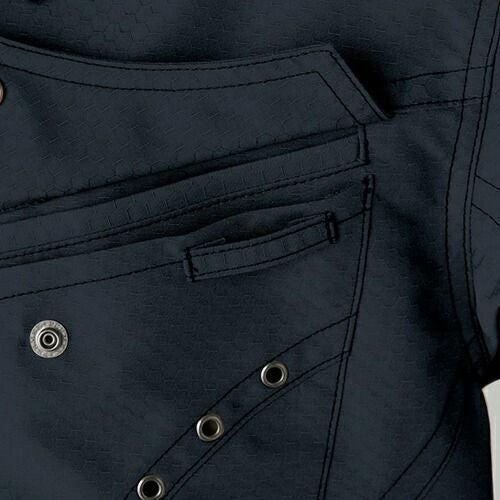 次世代を意識したカジュアルワークウエア。 ハニカムリップストップ素材や左胸ポケットの5連アイレットが特長。消臭・抗菌効果のあるDEO+テープの使用など、デザイン性と機能性を 兼ね備えた商品。