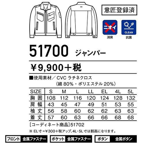 自重堂 Jawin 作業服 51700 ジャンパー 秋冬 メンズ 作業着 ワークウエア 通年 ブルゾン 上着 おしゃれ かっこいい 人気 企業 法人 ワーク 作業 工場 外作業 ワークユニフォーム 仕事 土木 工事 現場