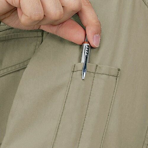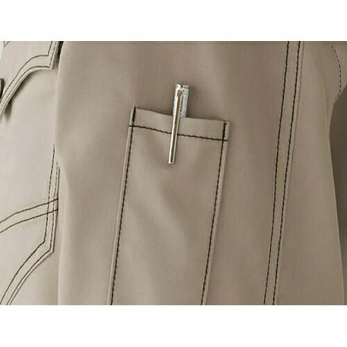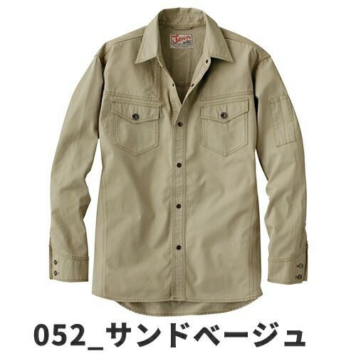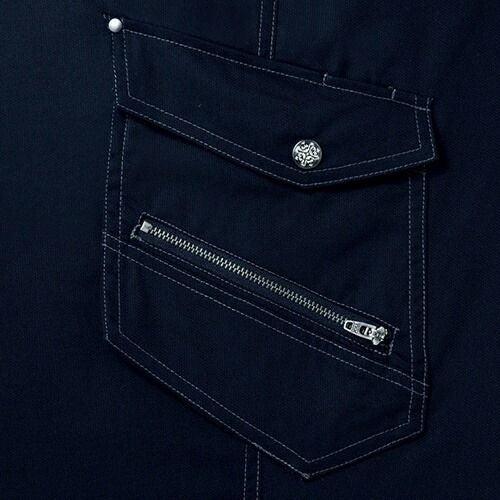 ソフトな風合いと独特の織柄が特長のミリタリー調ワークウエア。 アクセントの肩章や胸ポケットでハードなイメージ。 消臭・抗菌効果のあるDEO+テープやダブルポケットなど付加価値が高い商品。